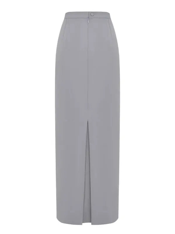 Jupe longue classique en coton, avec une légère fente à l’arrière et un bouton à la taille. Coupe droite et confortable.