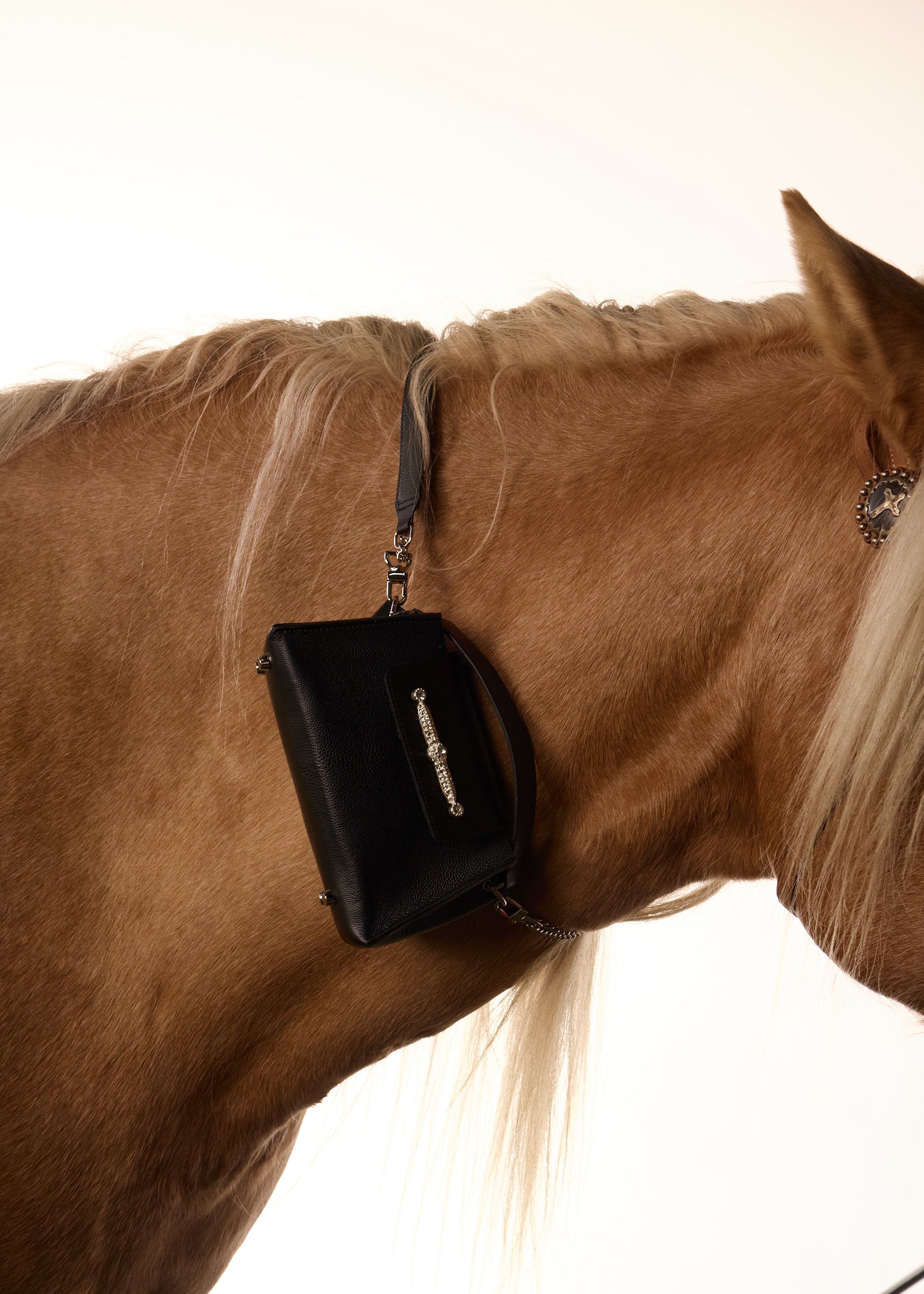 Alliant minimalisme et héritage tchétchène, cette pièce aux lignes épurées révèle des ornements subtils, porteurs de sens et de mémoire. Réalisée intégralement en cuir dans un atelier parisien, elle est façonnée à la main par une artisane, célébrant l’excellence du geste et le temps long.